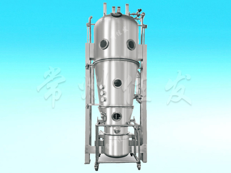 旋流流化床制粒包衣機是將流化床做成葉片式結(jié)構(gòu)的流化床,并使葉片呈一定斜度,讓氣流從葉片的間隙通過,形成環(huán)流狀的強大氣流,使物料呈旋渦狀似的有序運動,同時安裝在側(cè)壁的氣動噴嘴將粘合劑或包衣液噴入呈旋渦狀的物料層,從而將粉體制成顆?;颢@得連續(xù)均勻的衣膜。